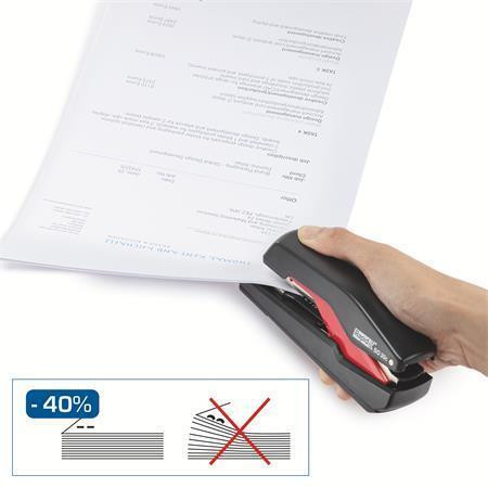 Revoluční sešívačka kompaktních rozměrů a s klasickou kapacitou zásobníku, vybavená patentovanou technologií Omnipress®, která umožňuje s minimem síly stlačit sešívačku po celém jejím těle a snadno tak sešít dokument na stole i v ruce. To vše v kombinaci s technologií super plochého sešívání SuperFlatClinch přinášející 40% úsporu místa při zakládání takto sešitých dokumentů.
