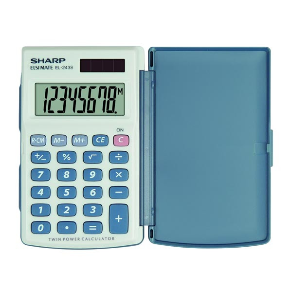 Sharp Kalkulačka EL-243S, šedo-modrá, kapesní, osmimístná