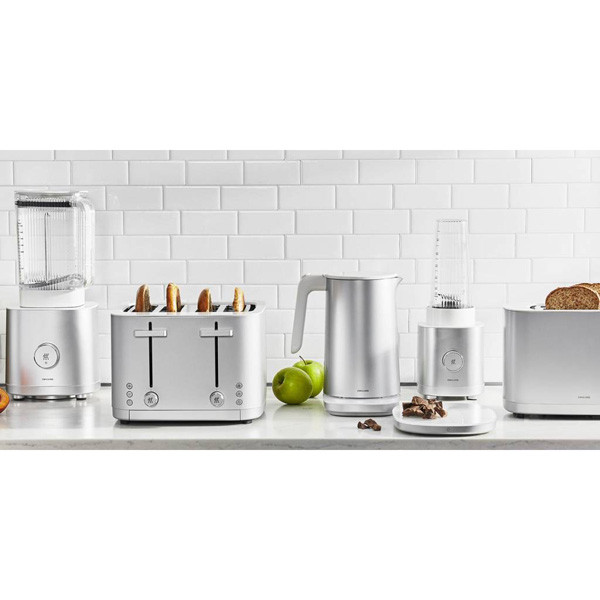 Smoothie mixér v matném stříbrném provedení z kolekce Enfinigy od německého výrobce Zwilling J.A. Hencekls. Výkonný a tichý AC motor, patentovaná čepel se zoubkovaným ostřím, odolná a lehká tritanová mixovací To-Go nádoba.