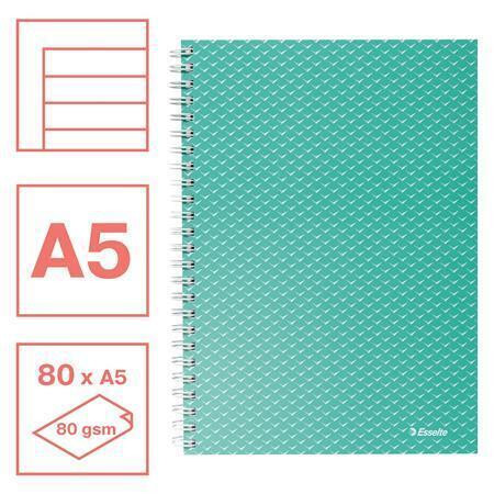 Spirálový sešit "Colour Breeze", zelený, A5, linkovaný, 80 listů, ESSELTE 628472
