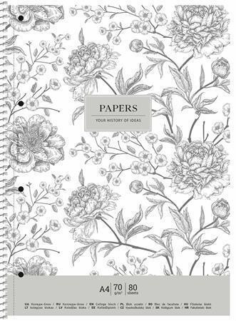 Spirálový sešit "Vintage flowers", mix motivů, linkovaný, A4+, 80 listů, SHKOLYARYK A4-080-6700L