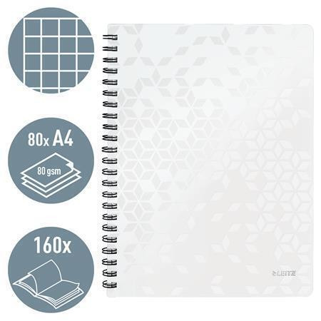 Spirálový sešit "Wow", bílá, čtverečkovaný, A4, 80 listů, LEITZ