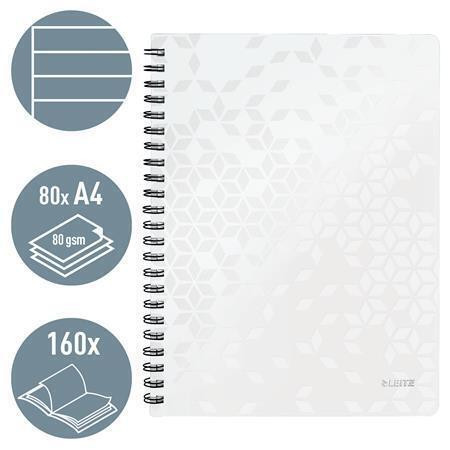 Spirálový sešit "Wow", bílá, linkovaný, A4, 80 listů, LEITZ