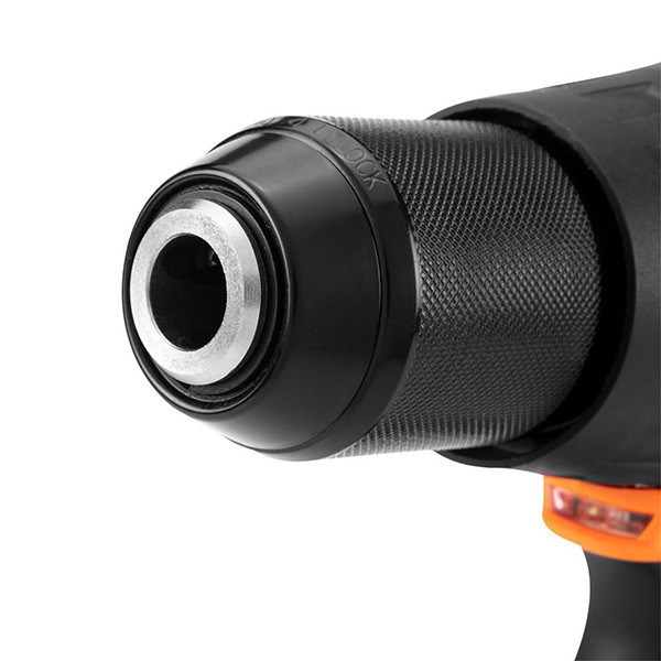 Zařízení bylo navrženo s ohledem na pohodlí. Ergonomický tvar rukojeti, přídavná rukojeť a aerodynamický design usnadňují práci v náročných podmínkách. Rukojeť je navíc pokryta protiskluzovým materiálem, který zajišťuje pevný a stabilní úchop. Kovová hlava ovlivňuje životnost nástroje. Akumulátorový vrtací šroubovák NEO nabízí komfort používání po mnoho let.