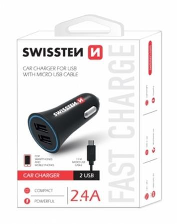 SWISSTEN CAR CHARGER 2,4A POWER WITH 2x USB + CABLE MICRO USB