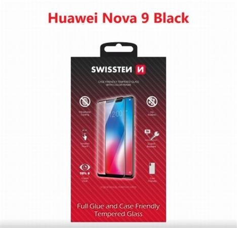 SWISSTEN SKLO FULL GLUE, COLOR FRAME, CASE FRIENDLY HUAWEI NOVA 9 ČERNÉ