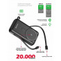 Powerbanka disponuje kapacitou 20.000 mAh, což zaručí, že na svých cestách budete mít veliký dostatek energie vždy při sobě. Výhodou je, že powerbanka vůči její kapacitě nezabírá velké množství místa. Rozměry: 129 x 73 x 30 mm