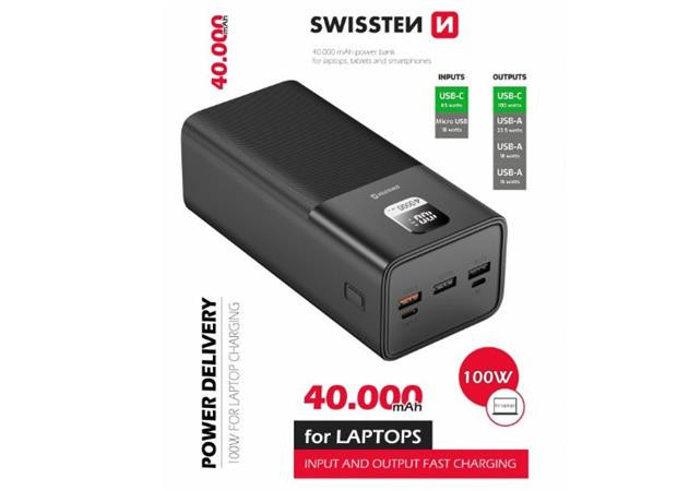 SWISSTEN POWER LINE POWER BANK 40000 mAh 100W POWER DELIVERY BLACK