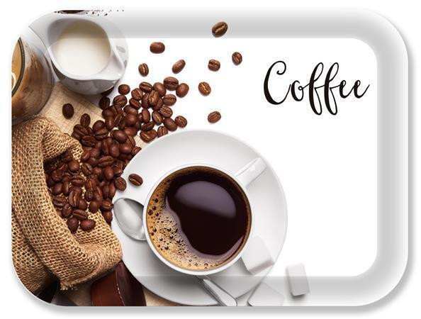 Tác, kávový vzor, plastový, obdélníkový, 33 x 24,5 cm, 1605MUA123