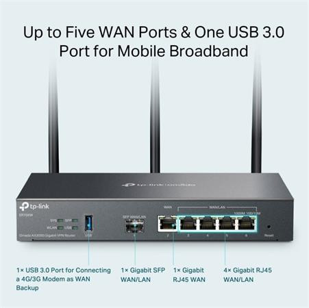 TP-Link ER706W - AX3000 Router VPN WiFi 6, 1x GWAN + 4x GWAN/LAN + 1x GWAN/LAN SFP, USB, Omada SDN