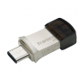 Transcend 256GB JetFlash 890, USB-C/USB 3.1 duální flash disk, malé rozměry, stříbrný kov, odolá prachu i vodě