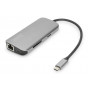 8portová dokovací stanice USB-C, 2xUSB3.0, 1xRJ45, 2xHDMI, 1xPD, 1xMicro SD, 1xSD, šedá
