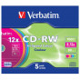 Verbatim CD-RW, 43167, SERL High-Speed Colour, 5-pack, 700MB, 12x, 80min., 12cm, bez možnosti potisku, slim box, pro archivaci dat