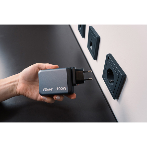Verbatim GaN nabíječka do sítě o výkonu 100 W v elegantním designu, který se vejde do dlaně, kombinuje hned několik portů v jednom zařízení: dva porty USB-C PD 100 W, jeden port USB-C PD 65 W a jeden port USB-A QC 3.0 (EU/UK/US). Ideální do kanceláře, pro domácí použití nebo na cesty, kde dodá energii vašemu notebooku, tabletu, chytrému telefonu, herním a mnoha dalším zařízením.