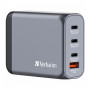 Verbatim, GaN cestovní nabíječka do sítě USB 3.0, USB C, šedá, 100 W, vyměnitelné vidlice C,G,A