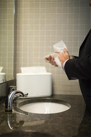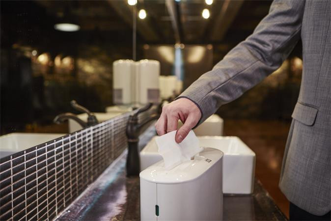 Tork Xpress® Countertop zásobník na papírové ručníky Multifold v designu Elevation je skvělou alternativou k volně ležícím ručníkům na poličce či umyvadle na toaletách a umývárnách.