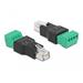 Delock Adapter RJ11/14 male to Terminal Block 4 pin 2-part At this RJ11/14 terminal block adapter by Delock can be connected open wires. The adapter is suitable for telecommunication or motor control as well as for the hobby sector.